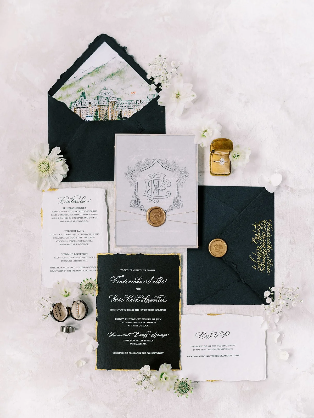 Justine, a seasoned expert at capturing Banff's most luxurious love stories, shares ' It's an honor to document the pure opulence that marked this extraordinary celebration. Each frame of this special day transports you to a world of refined sophistication and breathtaking beauty.' Indulge in the essence of Fredericka and Eric's romantic wedding day, where every moment is a testament to the unparalleled charm of a Rocky Mountain love story.